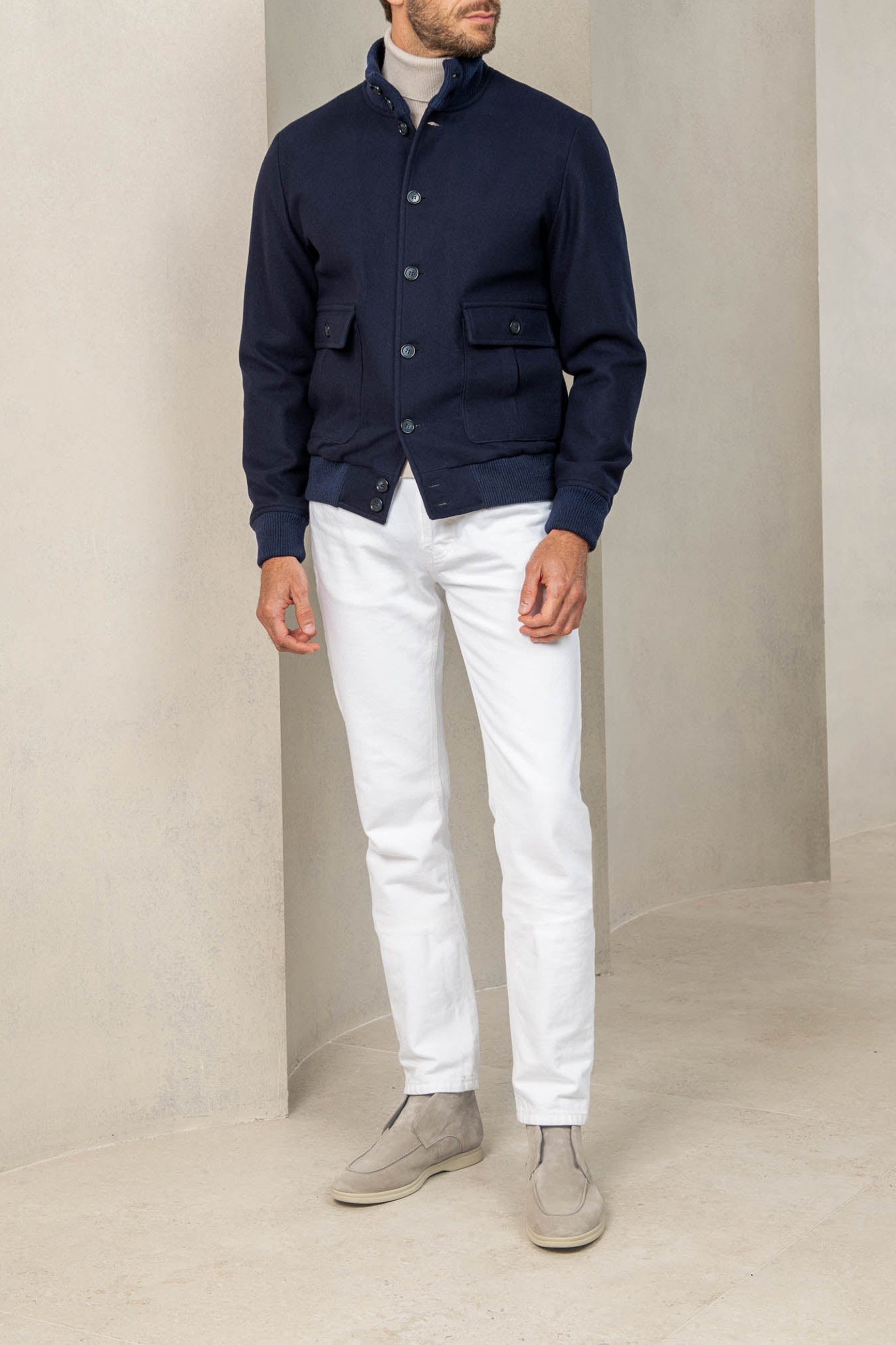 Blue Super 180'S Wool Flannel Bomber Jacket 1601543