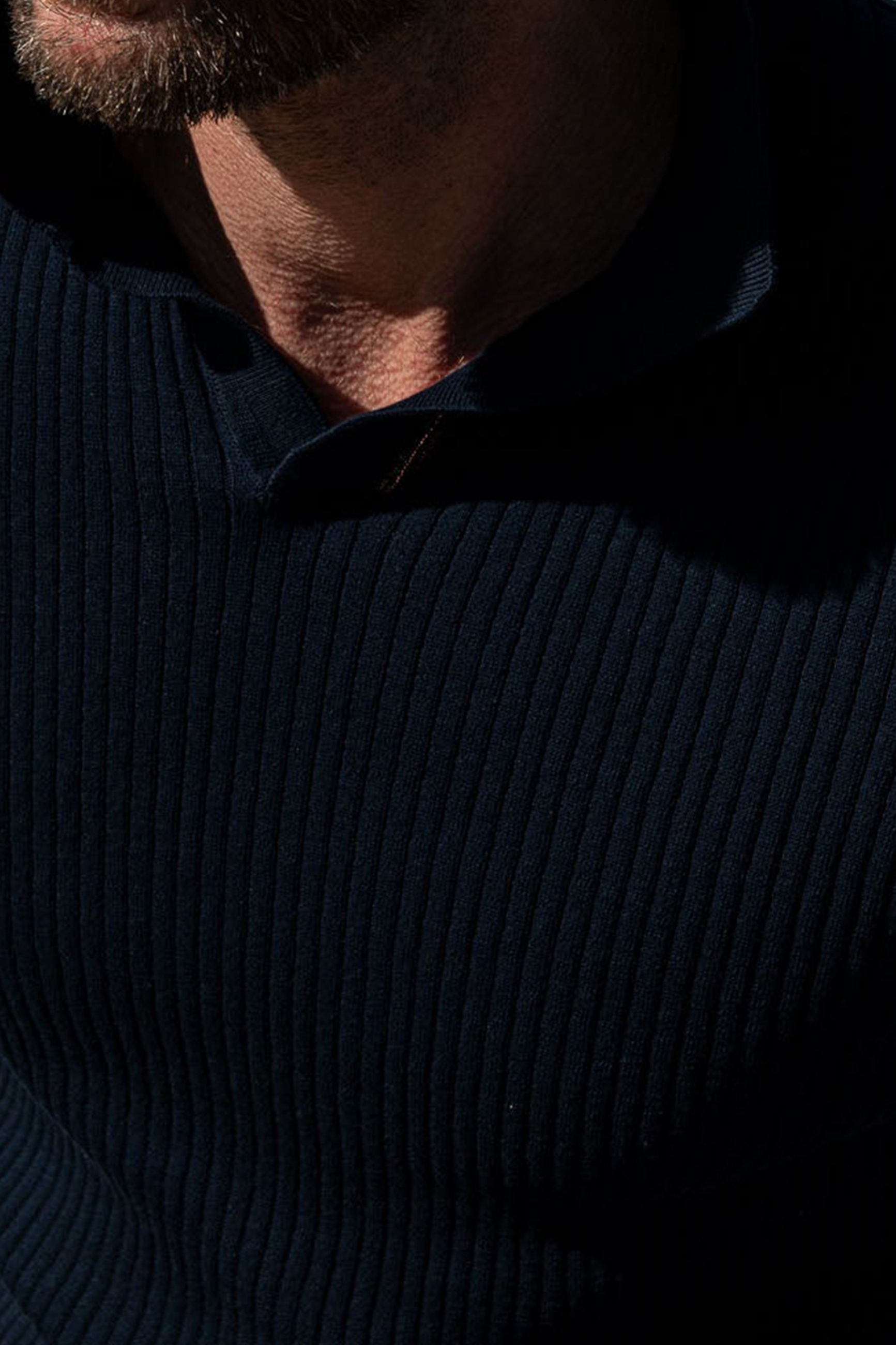 Blue Thin Ribs Knit Polo 1602019
