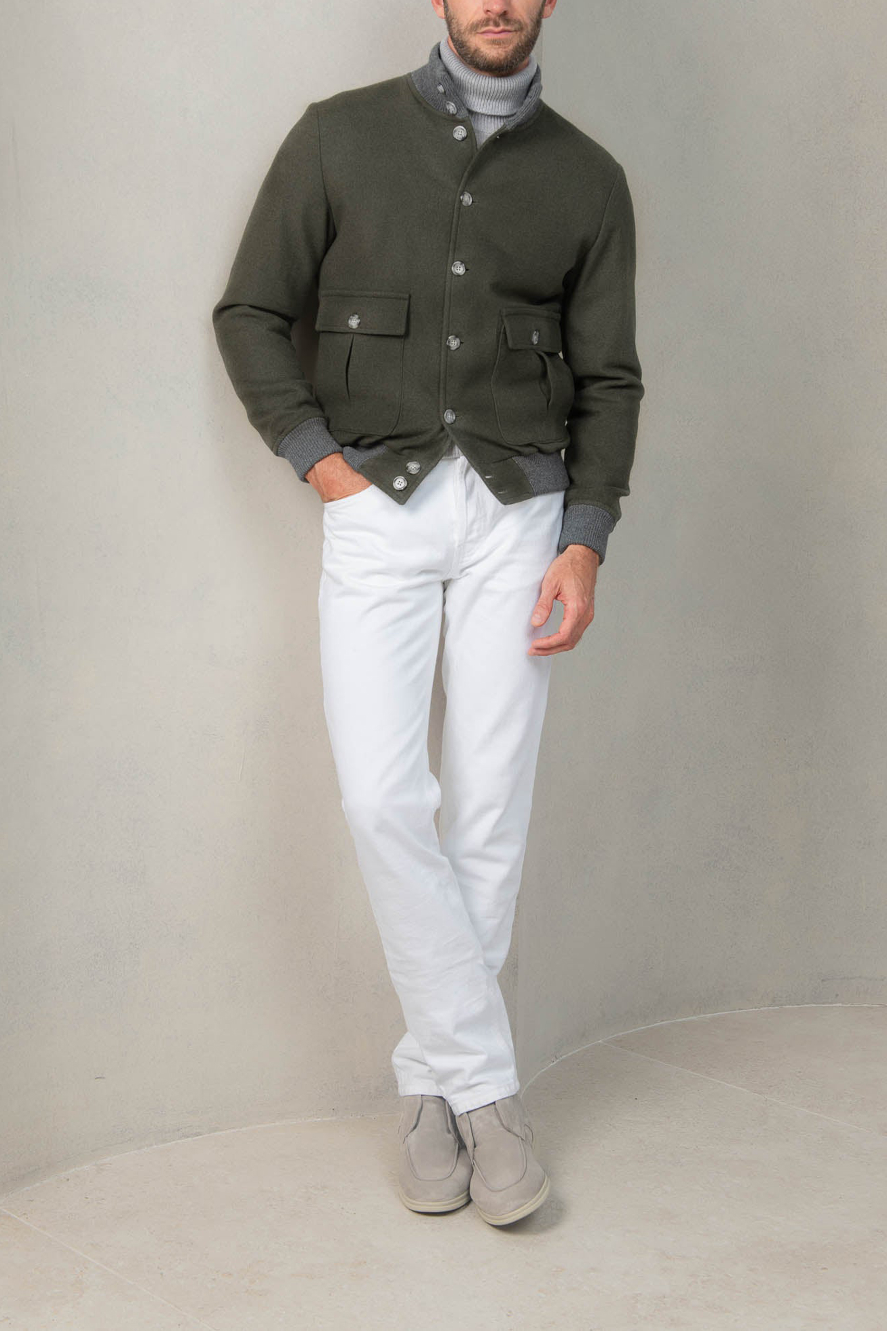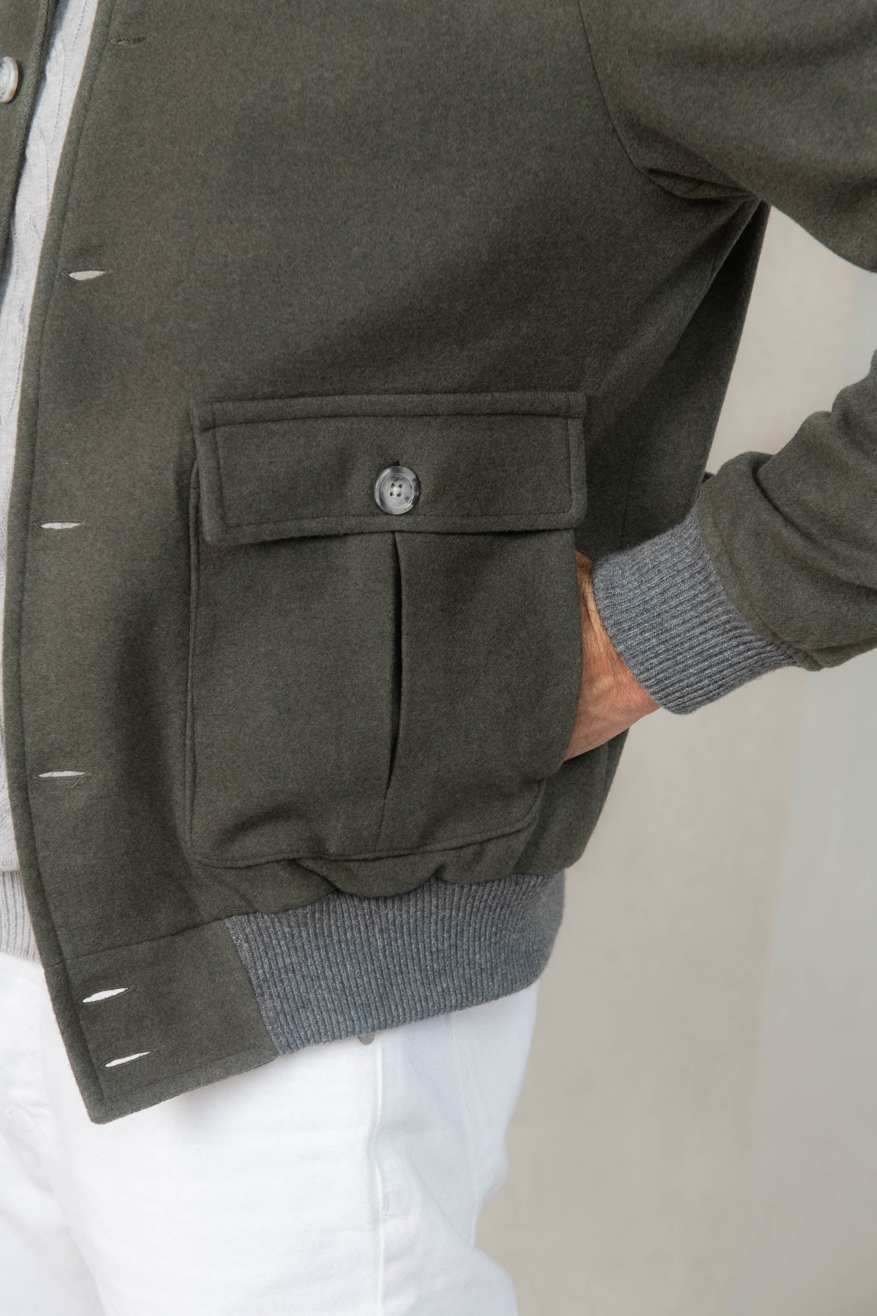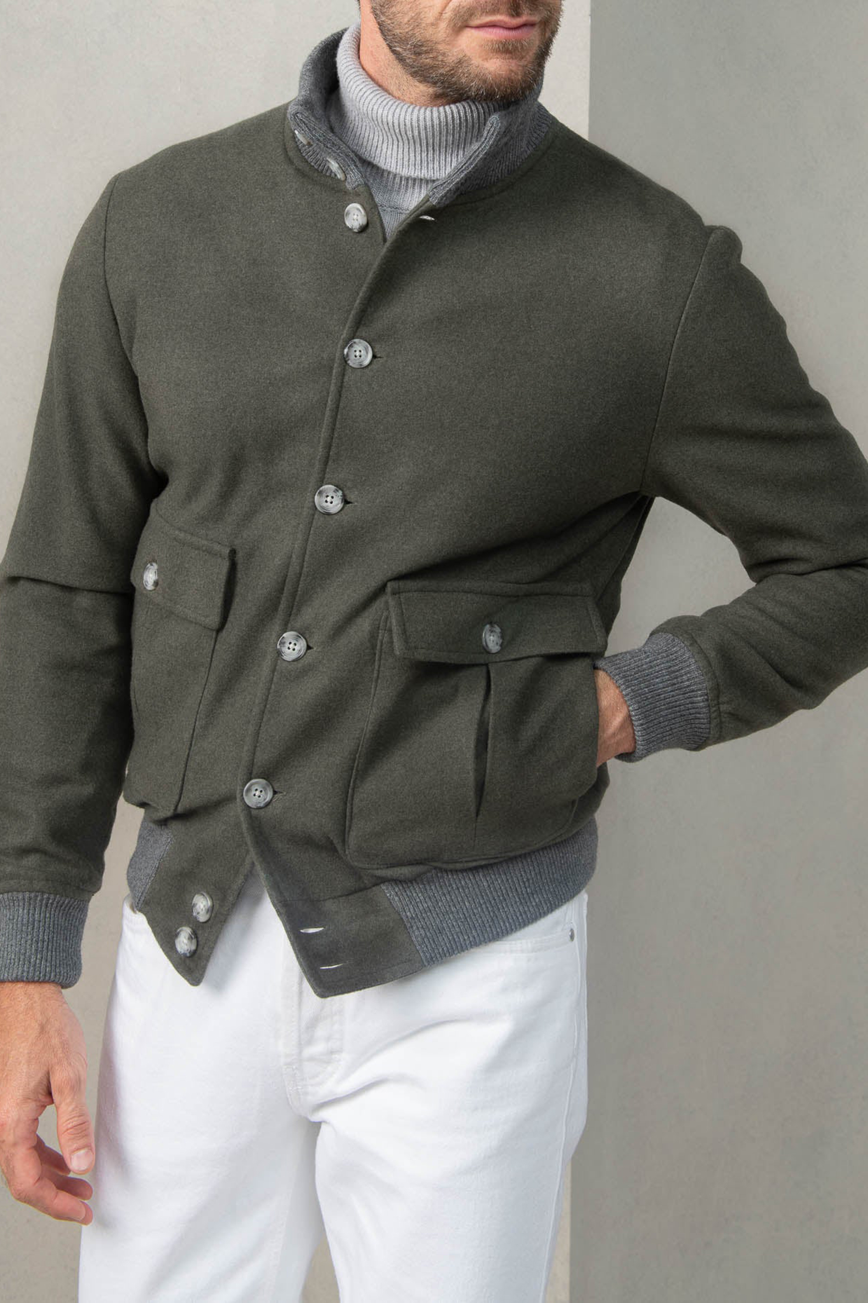 Green Super 180'S Wool Flannel Bomber Jacket 1601555